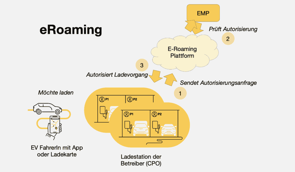• eRoaming platform: Connects EMP and CPO via standardized interfaces (e.g. OCPI) and checks authorizations in real time.