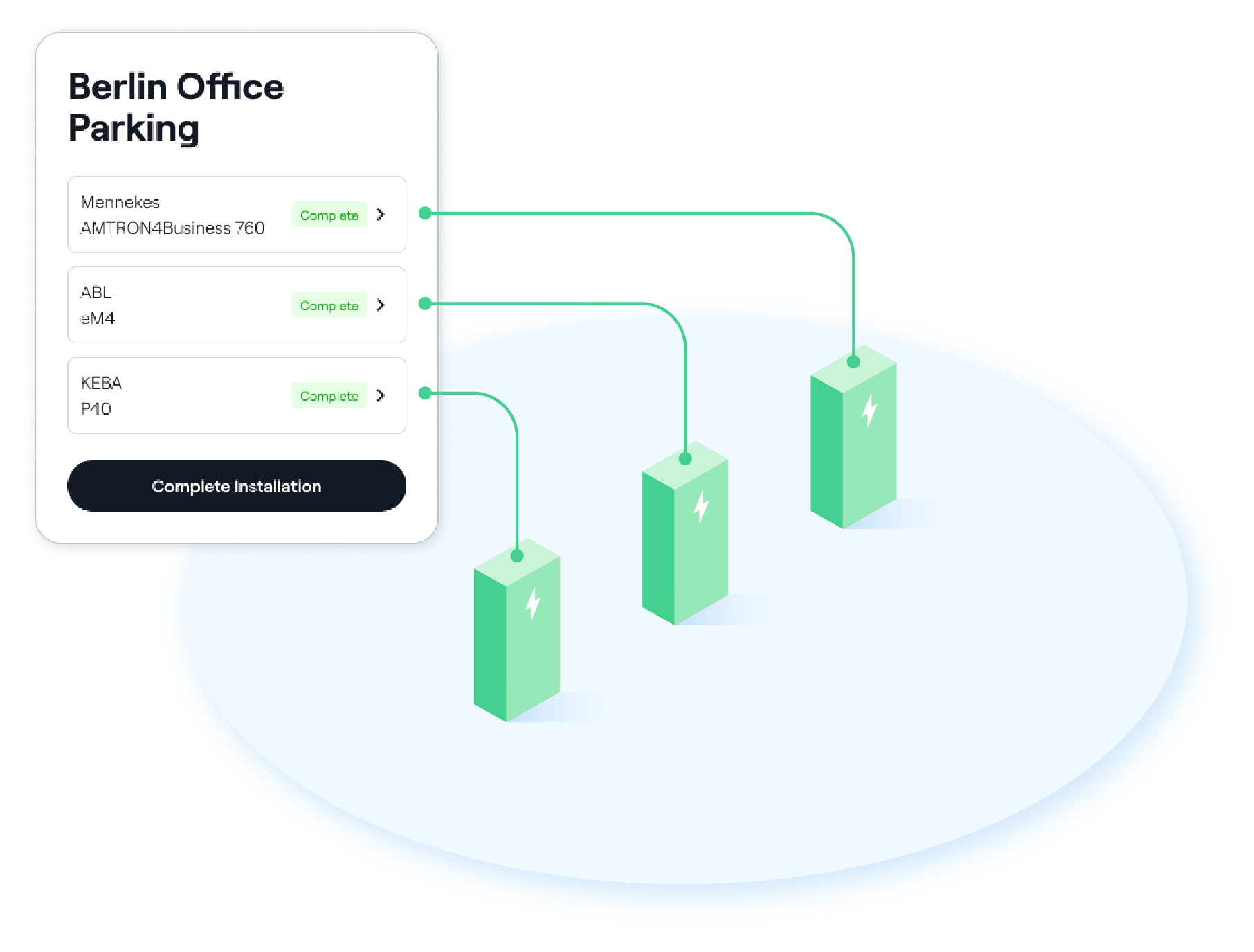 La nouvelle installation multi-stations dans eWizard permet d'installer plusieurs stations de recharge de manière centralisée et en une seule étape - y compris l'activation EMS, le dépannage et le rapport d'installation commun.